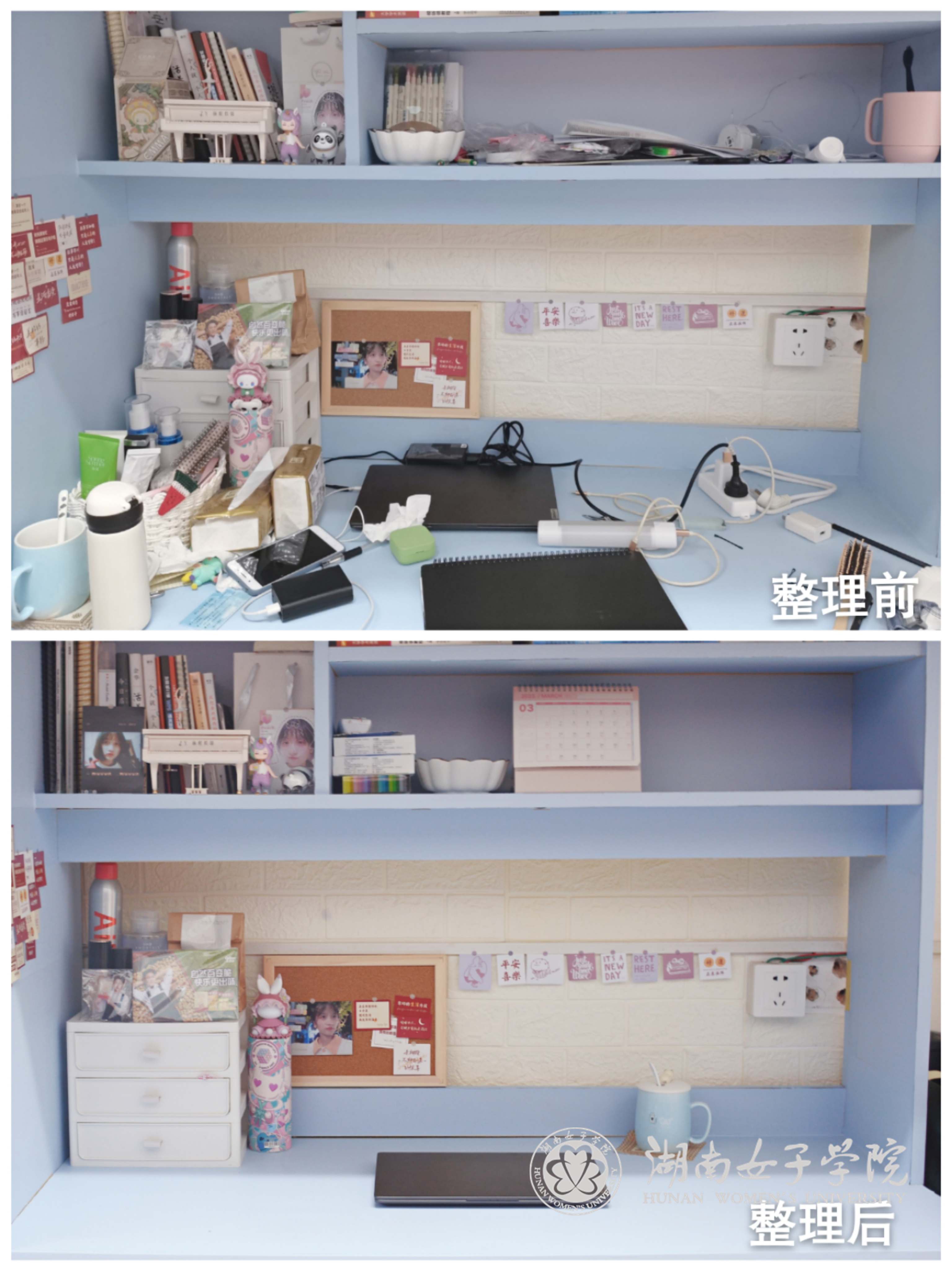 本次活动结束后,在同学们的投稿作品中,学院从清洁卫生、分类收纳、空间规划、整体美观等维度,针对性地提出了整改建议,评选了“星级寝室”,打造了“样板间”,推出了“最具设计感书桌”。