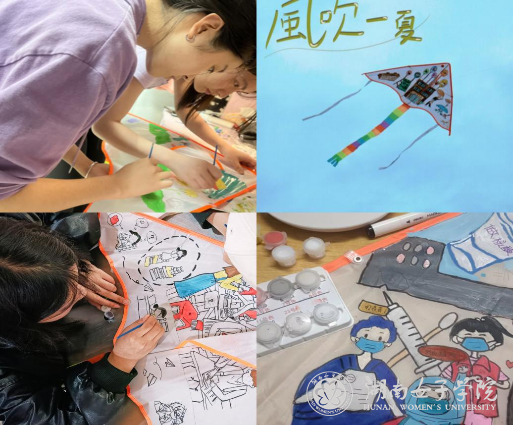 风筝又称纸鸢,中国传统工艺品,古时人们通过风筝传达信息,风筝上寓意吉祥的图案表达对美好生活的向往和憧憬,借放飞风筝祈愿灾厄消散。5月4日同学们领取竹条,纸张、绳子、颜料,制作风筝,放飞风筝,既感受制作过程又享受制作成果。2021级家政专业吴滢钰说:“亲自动手制作风筝的过程十分有趣,完成时的成就感让我缓解了近日来的紧张情绪,锻炼了动手能力、充实了我的业余生活。”2020级空乘专业申萌说:“放风筝时,神清气爽的感觉让人消除内心杂念;看到广阔的蓝天,心胸也会感到开阔,让人身心放松。”