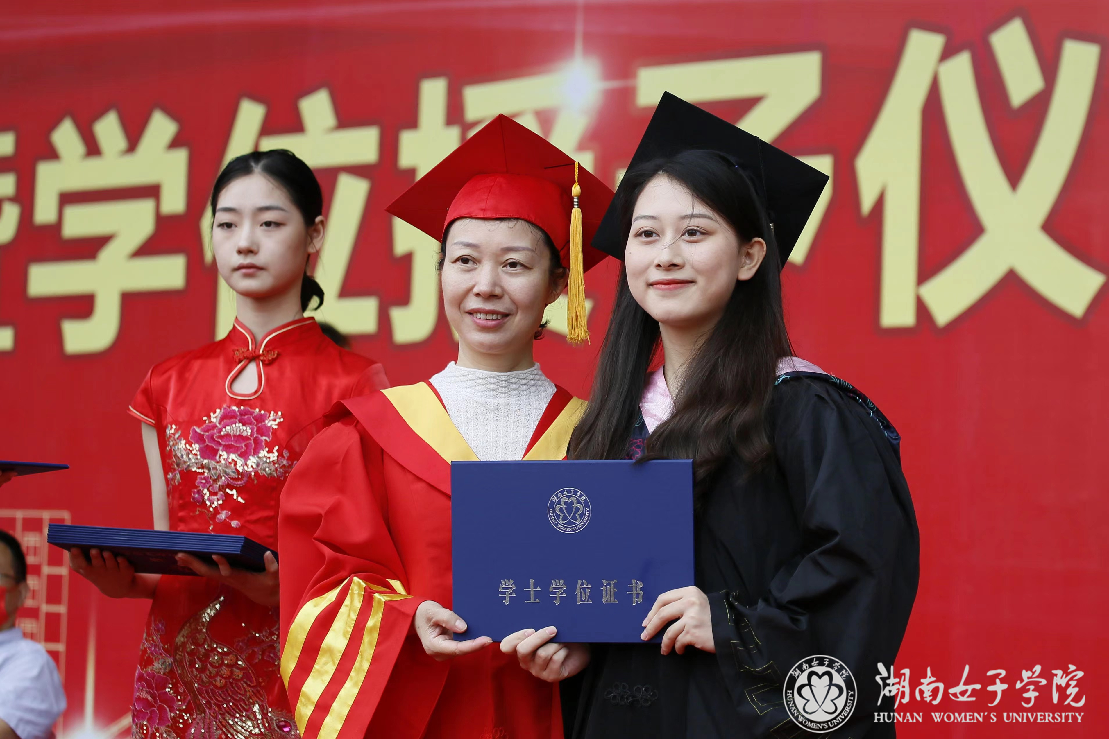 在拨穗正冠仪式中,杨兰英为省级优秀毕业生代表拨穗正冠,全体校领导为获得学士学位毕业生拨穗正冠。最后,全体毕业生起立,齐诵感恩颂词:“感谢父母,生我养我;感谢老师,谆谆教诲;感谢母校,育我成才;懿德睿智,笃行臻美;自尊自信,自立自强;金玉良言,吾辈谨记;担当家国,重任在肩;珍惜青春,圆梦有时;努力奋斗,贡献社会!”短短七十二个字,情真意长。毕业生们生逢其时,重任在肩,这份铿锵有力的毕业誓言,传递着时代脉搏和未来期许,必将成为点亮人生新阶段的一盏明灯。