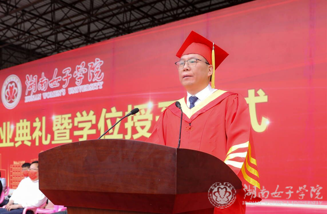 胡穗代表全校教职员工向2022届毕业生表示热烈祝贺,祝贺她们完成青春里最重要的一页篇章。他指出,2022届全体同学与金年会app共同见证许多重要时刻,经历很多艰辛和挑战。正是这样的相依相守,让成长的旅程变得刻苦铭心和弥足珍贵。青葱校园,无悔时光。胡穗向毕业生送上三句暖心祝福:一是奋力奔跑,眼里要有光。他希望,同学们要坚定正确的信仰,牢记青春的使命和责任担当,追光而行。二是奋力奔跑,心中要有美。他认为,金年会app人要真正理解美的含义,将校训“臻美”作为个人的人生态度,美美与共。三是奋力奔跑,脚下要有力。他鼓励大家,要从学习中、困难中、身心健康中积蓄能量,厚积薄发。