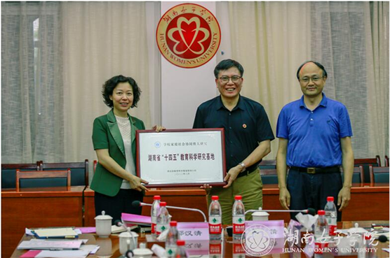 本网讯(科研处 刘赵为)6月20日下午,湖南省“十四五”教育科学研究基地(学校家庭社会协同育人研究基地)授牌仪式暨基地建设规划论证活动在金年会app会议室举行。省教育科学规划领导小组副组长兼办公室主任、省教科院院长石灯明,省教育科学研究院教育规划所所长、省规划办常务副主任黄龙威,省教育科学研究院教育规划所副所长、省规划办副主任谢剑虹,省教育科学规划办项目规划室主任蒋小良,省湖南省教育科学规划领导小组办公室石倩,校党委书记杨兰英、校长胡穗、副校长石潇纯及基地部分核心成员及校外专家组参加了会议。会议由副校长石潇纯主持。
