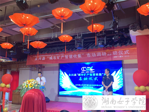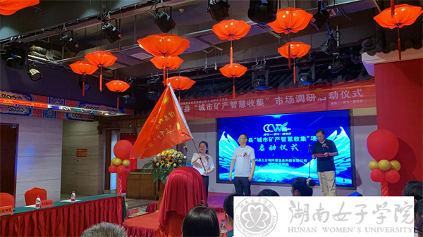 启动仪式上,曹磊致辞,对“三下乡”团队的到来表示热烈欢迎,并向与会人员介绍了企业基本情况及“城市矿产 智慧收集”项目设计理念与实施计划。接着,朱建军对三分地环保公司与永兴县政府对学院实践团队的支持表示感谢,他向大家详细介绍了学校、学院在校企合作方面的多方举措,并强调将脚踏实地、抓铁留痕、用心、用情、用力搞好此次调研。信息科学与工程学院学生付业莉雅代表实践团队承诺:在该活动中强化承担自身社会责任,用实际行动诠释担己责任,竭尽全力!随后,周雄代表永兴县政府对项目的启动表示祝贺与肯定,他期待校企合作能探索出资源智慧收集、循环利用的新路径,为永兴县的生态文明发展添砖加瓦!最后,朱建军向实践团队授旗,“三下乡”社会实践活动正式启动。