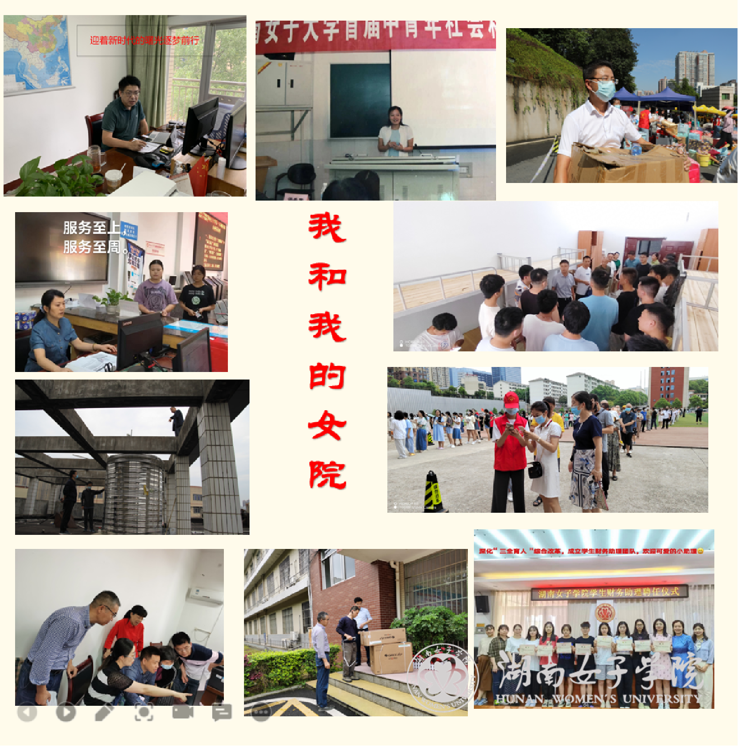 活动以校园工作、学习、生活为素材,征集了近50张照片,展示了机关四分会组成部门发展规划处、财务处、后勤基建处、资产管理处以师生为本、履职尽责的工作场景,展现了教职工爱岗敬业、真诚奉献、积极向上、不断进取的精神风貌。其中,“冲锋在前”组图,展现了后勤基建处教职工放弃暑假休息,冒着酷暑,克服重重困难,为按时按质完成学生宿舍楼提质改造工作贡献自己力量的情景。“爱校爱生是我们的职责”组图,展现了资产管理教职工强化作风建设,齐心协力严把招标采购、资产验收关口的日常。照片还重现了分会开展的工间操、红色歌曲联唱、拔河比赛等文体活动情景,大家广泛参与,热情洋溢,乐在其中,令人回味无穷。