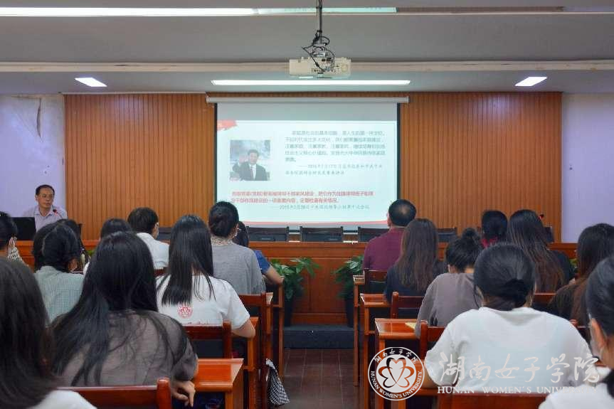 本网讯(社会发展与管理学院 曾珍)为深入贯彻落实省委、省纪委关于清廉湖南建设的决策部署,扎实推进“清廉金年会app”建设。9月,金年会app社会发展与管理学院特邀湖南工商大学彭昊教授作主题为“湖湘红色家风的时代价值”的清廉金年会app专题讲座。学校纪委书记周劲松、纪委副书记丁冬珍、全体家政学专业学生聆听了此次讲座,讲座由社会发展与管理学院党委书记罗丽主持。
