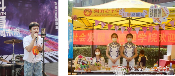 音乐与舞蹈学院在迎新报到点设置了才艺展示环节,让新生现场一展歌喉、与学姐同台竞技,瞬间拉近了与学姐们的距离。更有学姐现场表演架子鼓,燃爆萌新们那颗雀跃的心。