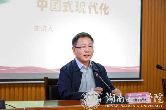 会上,杨灿明以《中国式现代化》为题作主题宣讲,他从“西方式现代化的发展阶段”“中国式现代化的发展历程”“中国式现代化新道路”“中国式现代化的五个内涵”四个方面,讲述了中西方现代化的不同演进过程,阐明了以中国式现代化全面推进中华民族伟大复兴的理论逻辑,对“中国式现代化”这一二十大报告中的新热点进行了系统讲解。整场宣讲内容丰富、观点新颖,视野宏大、逻辑严密,哲理学理道理层层递进,宏观中观微观深入浅出,对深入理解和把握党的二十大精神具有很强的指导性。