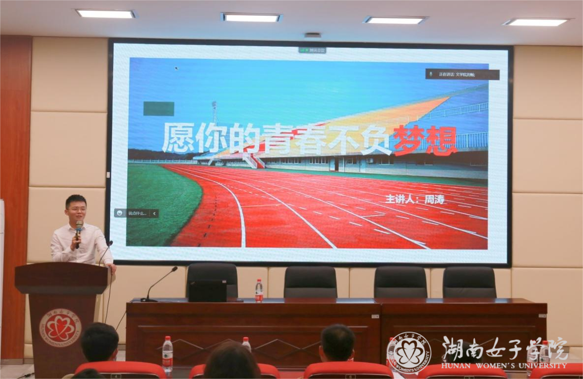 本网讯(文学院 莫阳 牛梦瑶)10月26日,由教务处(创新创业学院)主办、文学院承办的金年会app双创月系列活动在懿德楼109会议室举行。本次活动由“芒果叔叔”品牌创始人、全国大学生创业百强人物、湖南教育电视台嘉宾主持人、湖南2017年度创业榜样人以及湖南多所高校大学生创业导师周涛先生担任主讲人,围绕“愿你的青春不负梦想”开展专题讲座,文学院播音与主持艺术专业师生参加讲座。