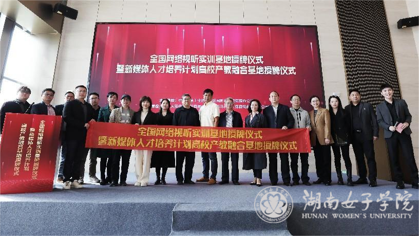 本网讯(文学院 林伊涵)11月1日上午,“新媒体人才培养计划产教融合基地”授牌仪式在马栏山视频文创产业园举行,副校长石潇纯、文学院院长刘琼、传媒系教师林伊涵出席仪式。