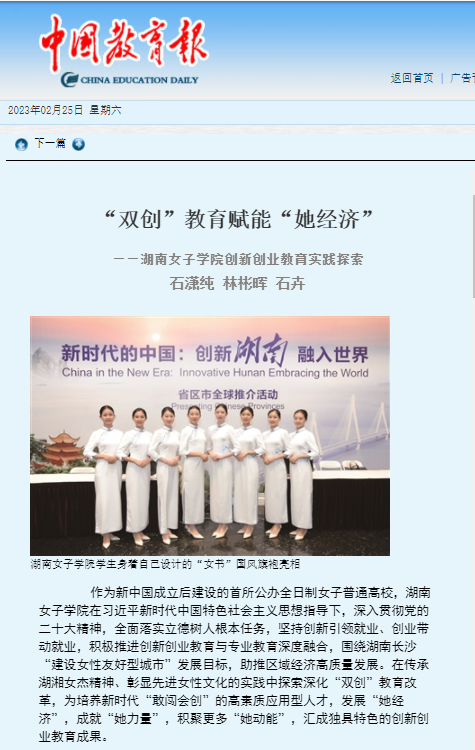 本网讯 (教务处(创新创业学院) 林彬晖)2月25日,《中国教育报》第四版刊文《“双创”教育赋能“她经济”----金年会app创新创业教育实践探索》,聚焦金年会app双创教育工作经验和成效。