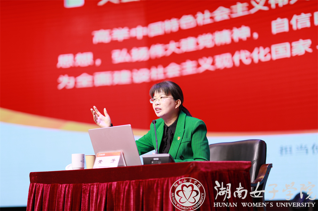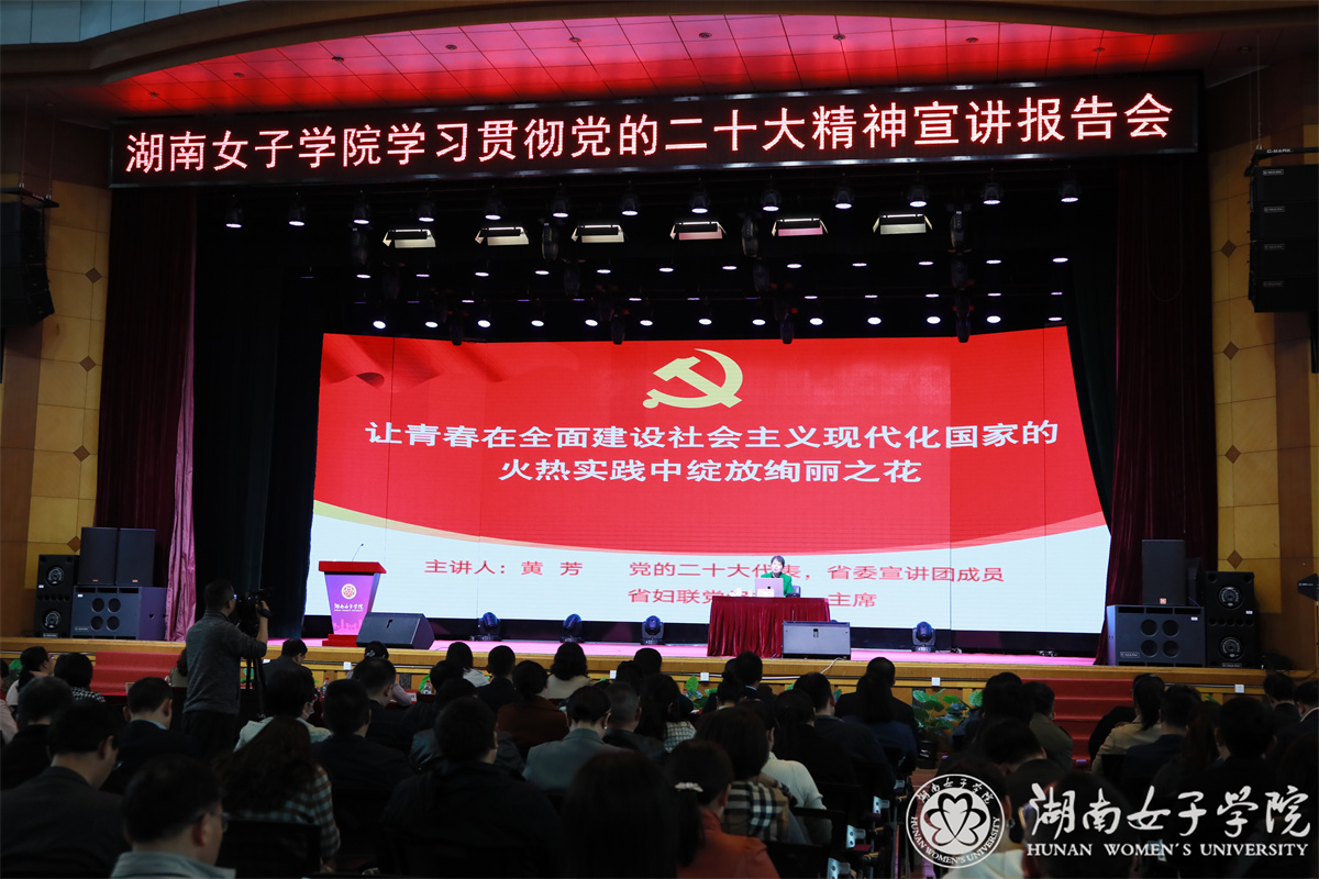黄芳以《让青春在全面建设社会主义现代化国家的火热实践中绽放绚丽之花》为题,从大会盛况、湖南代表团情况、党的二十大报告要点等方面展开宣讲,从十五个方面阐明了大会召开的时代背景、过去五年取得的成绩、新时代十年的伟大变革以及什么是中国式现代化,对党的二十大报告进行了详细解读和系统阐释。她深入解读了报告中关于教育科技人才、青年工作、妇女儿童家庭和妇联工作的论述,寄语广大青年要坚定不移听党话、跟党走,怀抱梦想又脚踏实地,敢想敢为又善作善成,立志做有理想、敢担当、能吃苦、肯奋斗的新时代好青年,让青春在全面建设社会主义现代化国家的火热实践中绽放绚丽之花。