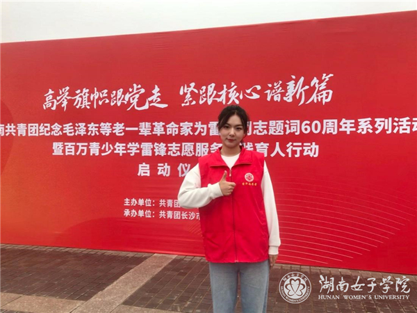 本网讯(音乐与舞蹈学院 梁宇红)3月3日上午,共青团湖南省委纪念毛泽东等老一辈革命家为雷锋同志题词60周年系列活动暨百万青少年学雷锋志愿服务实践育人行动启动仪式在长沙市橘子洲风景区毛泽东青年艺术雕塑广场举行。音乐与舞蹈学院21级音乐表演班学生李祉怡以青年志愿者身份获邀参加。