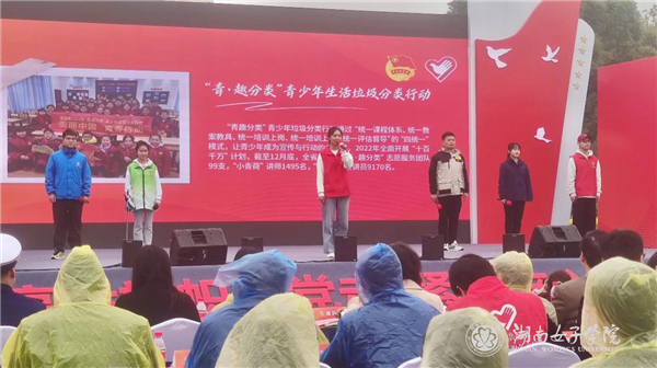 在启动仪式上,李祉怡作为“青趣分类”项目的志愿者代表,讲述了“小雷说志愿”的青春故事。李祉怡是全省1500名“小青荷”环保讲师的一员,在过去的一整年,她跟随大部队,去到了十多个社区,为了让大家更好地养成垃圾分类习惯,深入社区进行多场生活垃圾分类桶边督导和教学宣讲,不断增强社区居民绿色环保意识。