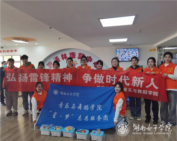 3月3日,我院21级音乐表演班学生李祉怡以青年志愿身份获邀参加湖南共青团百万青少年学雷锋志愿服务实践育人行动的启动仪式,并作为志愿者代表发言。同期,学院太阳花文艺志愿服务队在长沙市芙蓉区东湖街道韶光社区开展“传承弘扬雷锋精神”暨“文明实践365”志愿服务主题活动,为大家表演歌舞《永恒的歌谣》 和《唱支山歌给党听》。我院“星·梦”志愿服务队发挥专业优势持续在湖南省长沙市天心区星语林康复中心开展主题为“走进星星的世界,用音乐治愈梦想”的志愿服务活动。