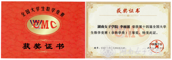 本网讯(信息科学与工程学院 蔡佐威)近日, 第十四届全国大学生数学竞赛成绩揭晓,我校2019级物流管理专业学生李雨滋荣获全国大学生数学竞赛(非数学类)三等奖,指导教师是信息科学与工程学院教师蔡佐威和潘显民。