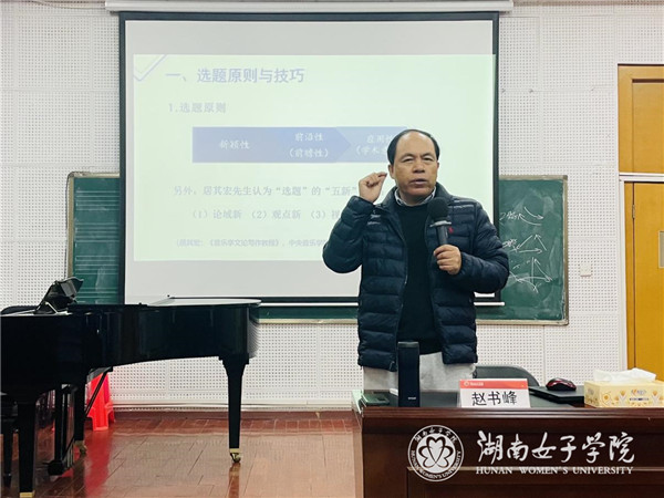 本网讯(音乐与舞蹈学院 肖志丹)3月22日上午,音乐与舞蹈学院邀请湖南师范大学音乐学院博士生导师赵书峰教授做客“臻美讲坛”。赵书峰教授以《课题申报与音乐学论文写作规范》为题,在尚乐楼201室为师生做主题讲座。音乐与舞蹈学院院长陈君凡等校内外师生近200人参加此次讲座。