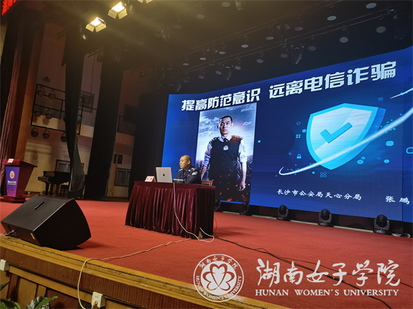 本网讯(保卫处 戴继霞)4月10日晚,金年会app举办防范电信网络诈骗专题系列首场讲座,澳门金年会app下载官网学工线负责人、澳门金年会app下载官网全体辅导员及全体学生参加。长沙市公安局“十大执法之星”、警务纪录片《守护解放西》“鹏哥”扮演者、“最有烟火气的警务职场人”、反诈专家、学校属地派出所副所长张鹏警官主讲,保卫处处长李迪主持。