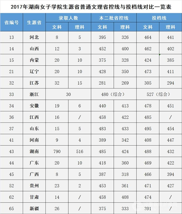 金年会app2017年生源省普通文理科省控线与投档线对比一览表