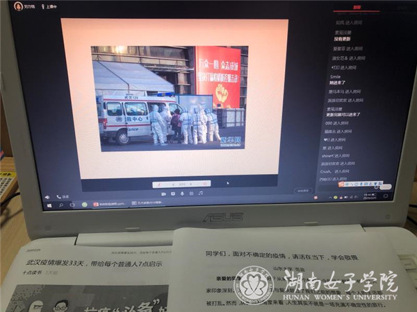 梁宇红老师带了近200个学生,其中还包括41名寒假回家涉汉的学生,学生成为她今年年初最牵挂的人,直到深夜,她的QQ和微信还在“滴滴滴”提示着新消息的到来。她结合平时与学生交流中的问题,以“不负韶华,并肩战‘疫’”为主题,联系现实热点事件,教育引导广大学生在面对这场突如其来的疫情时,要学会在恐慌中保有理性的思考,敬畏自然,敬畏生命,敬畏知识。同时她希望同学们在家按照学校学院安排自主自律的学习,最大程度地丰富自己的文化知识、提高自己的能力水平。