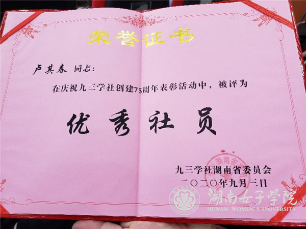 本网讯(宣传统战部 龚雅琴)近日,在庆祝九三学社创建75周年大会上,九三学社金年会app支社荣获“九三学社湖南省优秀集体”称号,社员卢其春被评选为“九三学社湖南省优秀社员”称号。