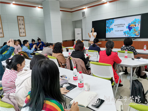 柯倩婷由“自梳女”的案例引出主流社会营造的“女性频道”“女性专栏”和“女性作为主体发展起来的小众边缘文化”等相关主题,重点就“小众边缘女性文化研究路径”和“女性文化行动”等研究成果,向老师们进行了深入浅出的介绍。随后,大家就各自近期研究方向和领域进行了简要的介绍与有效的沟通,同时与来自江永县的女书传人胡美月和女书文化意象馆馆长何跃娟就整合各方资源助力女书文化传承与保护也作了充分的探讨。最后,大家一同观摩了女性发展研究院在图书馆一楼大厅举办的“女书文化展”。目前,为构建具有非遗女书传承发展体系与探索大学生人文素养教育新实践,我校在课程教学、社团建设、工作坊建设、科学研究、辐射带动、展示交流等方面的工作已初显成效。