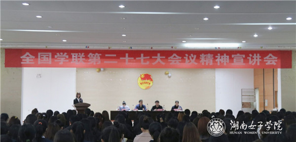 开班仪式结束后,全国学联第二十七大会议精神宣讲会正式开始。校学生会二届四任主席王璐瑶传达了会议精神,她在发言中详细介绍了习近平总书记的贺信和党中央致辞,分享了全国青联十三届全委会和全国学联二十七大的新闻视频,并在发言中对学联学生会的定位职能进行了充分的说明。