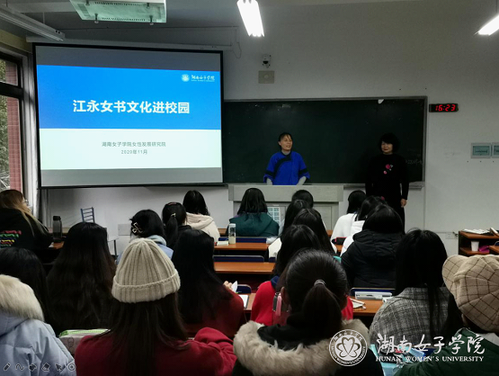此次活动总共在《女性学》《古代汉语》《女书文化概论》《女书书法大赛赛前辅导》等六个班级开展女书文化讲座,同学们通过聆听和观摩胡美月和何跃娟两位老师的分享,近距离的接触和感受江永女书书写和吟诵的独特魅力。何跃娟为同学们详细讲述了女书的起源和发展过程。女书是目前世界上唯一的一种女性专用文字,流传在中国湖南省江永县潇水流域。女书于2005年以“全世界最具性别特征文字”被收入《世界吉尼斯记录大全》,女书习俗于2006年被列入第一批中国国家级非物质文化遗产名录。女书传人胡美月为同学们书写女书文字和吟诵女书歌谣。女书是方块汉字的一种变异形态,主要通过当地方言(城关土话)来诵读。文字形体特点呈长菱形斜体,只有点、竖、斜、弧四种笔画,秀丽纤细。两位老师现场展示精美的女书绣品、女书文字作品,指导同学写作女书文字。带领同学一起演唱《结拜姐妹歌》《十绣歌》等作品。在讨论和提问环节,同学们积极主动地提出了自己的困惑与思考,两位老师进行了详细的解答。此次活动的成功举办对弘扬传统文化、传承湖湘女性文化精神、增强大学生文化自信等方面发挥了重要作用。
