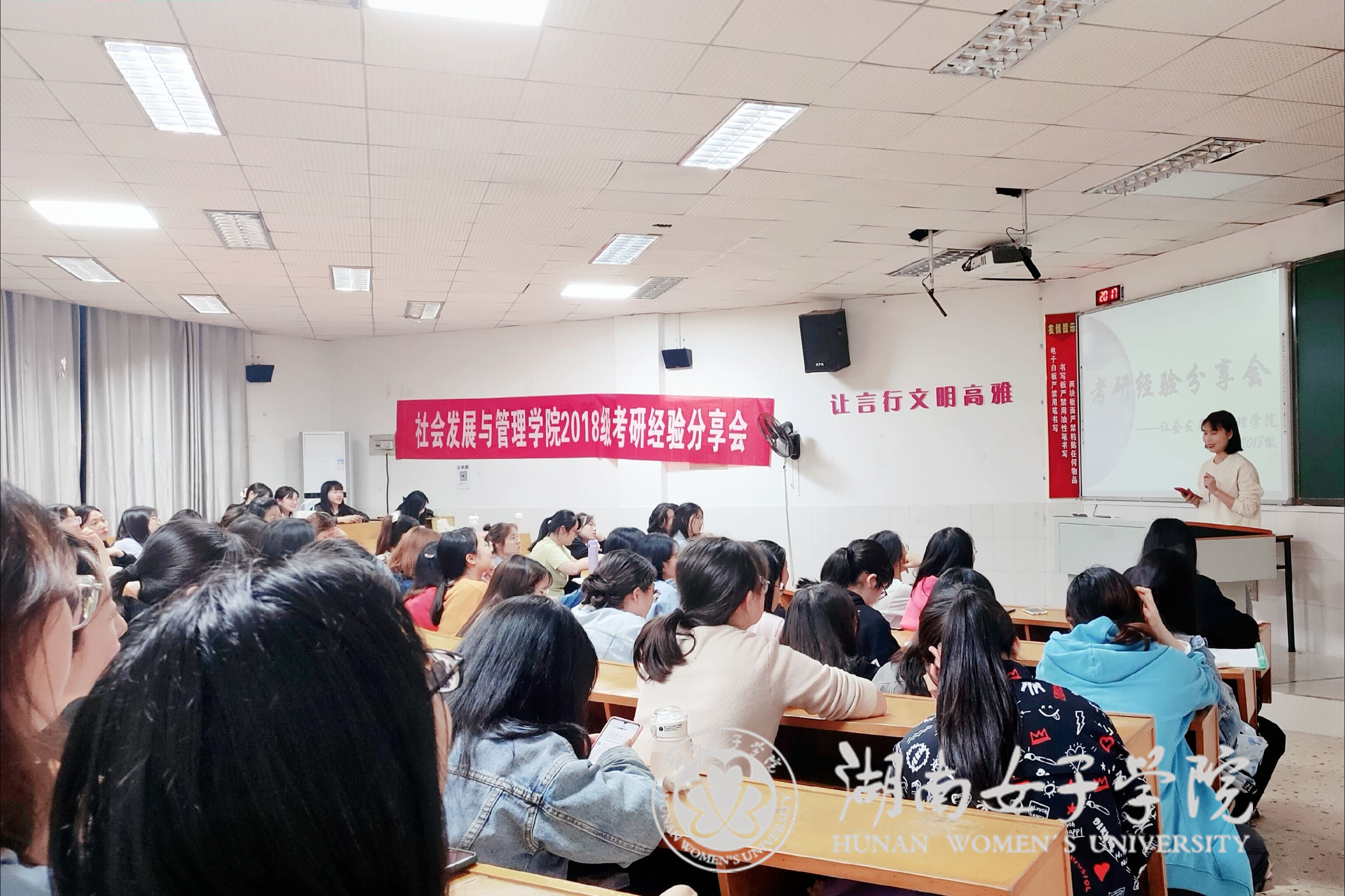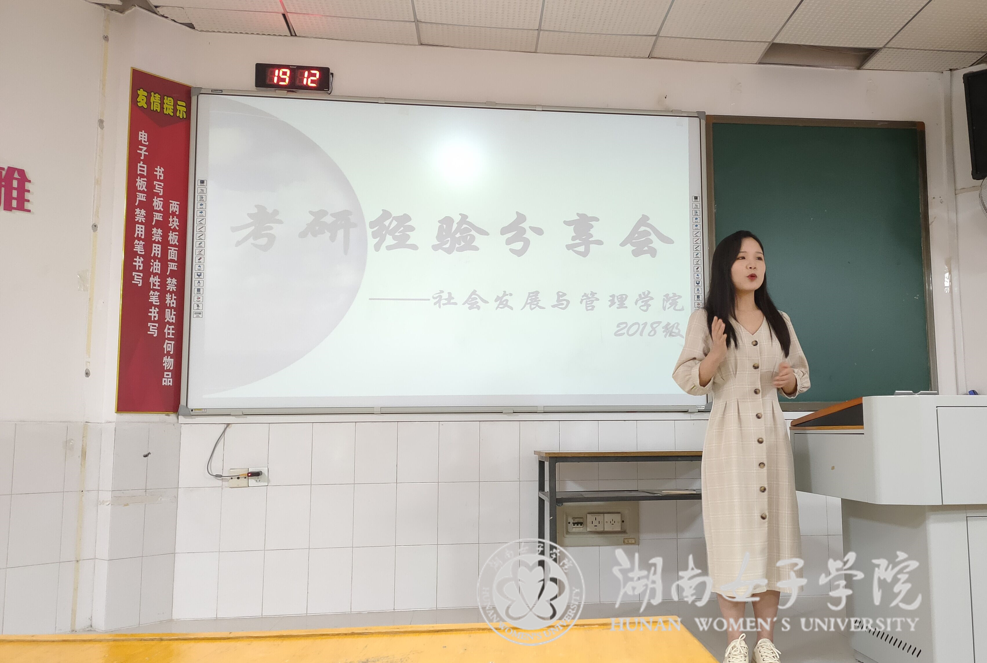 本网讯(伏六明 赵琳 李寒隽)为进一步提高我院学生的考研热情,明确考研目标,掌握相关考研技巧,了解更多考研信息,给有意向2022届(2018级)考研的同学们提供更多的考研经验,社会发展与管理学院于5月24日晚七点在睿智楼208召开了考研经验分享会。邀请2021届(2017级)今年成功考研升学的优秀学霸学姐为2018级学生做经验分享,鼓励和引导学生围绕考研目标早准备早开始。