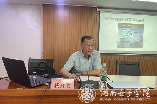本网讯保卫处 卜伟琼68下午党办校办和保卫处联合举办金年会app教职工反电信网络诈骗专题讲座。天心区反电诈中心副主任杨升明警官受邀主讲,分管安全工作副校长曾伏秋出席讲座,各职能部门和各学院负责人及教师代表聆听了讲座。讲座由保卫处处长李迪主持。