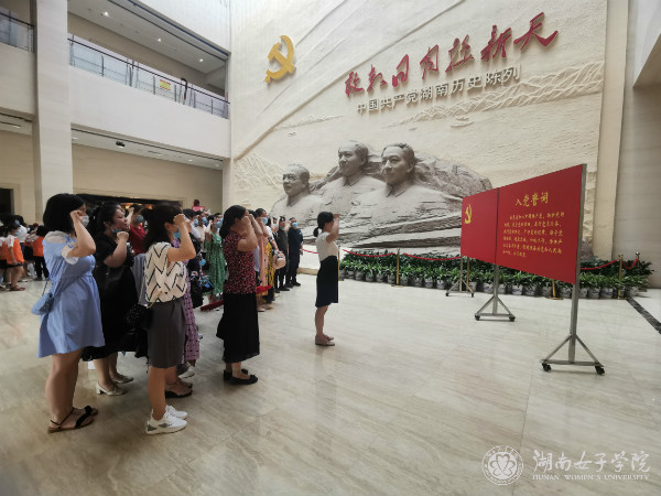 在党史陈列馆大厅“敢教日月换新天”雕塑前,昌晓英带领机关党员面向党旗庄严宣誓,重温入党誓词。在讲解员的引导下,有序参观了展厅,通过图片、书报、文件等史料,回顾了中国共产党领导湖南人民进行革命、建设、改革的光辉历程,感受革命先烈追求理想、艰苦奋斗的革命精神和为民牺牲的大无畏精神。