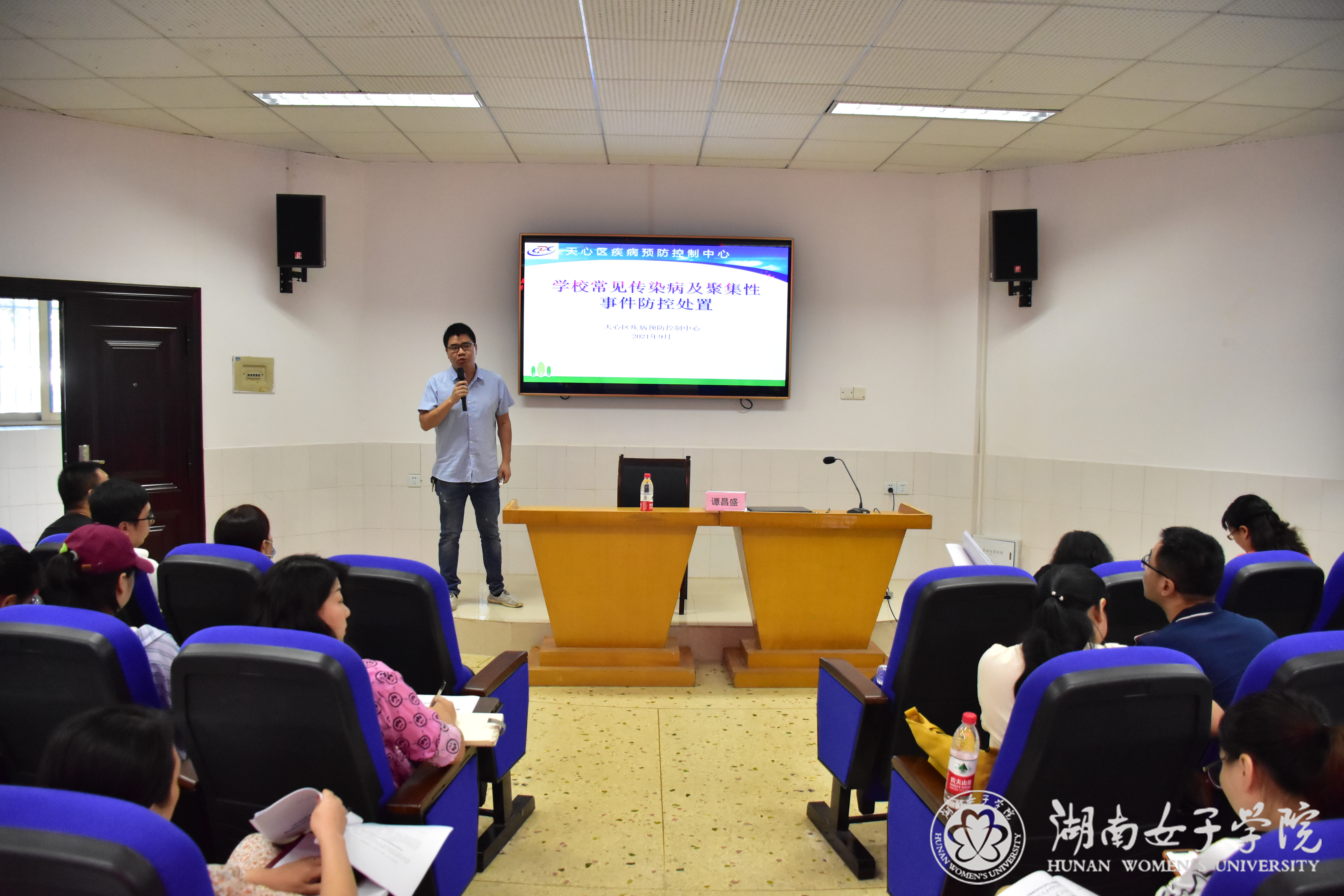 培训第二阶段,天心区疾病预防控制中心应急办主任谭昌盛就秋季开学疫情防控和常见传染病防治等做了《学校常见传染病及聚集性事件防控处置》专题讲座。他指出,高校是人群高度集中区域,在疾病预防方面尤其需要关注传染病的爆发及防控。在疫情形势严峻的当下,高校更要做好相关应对措施,保证师生健康地工作和学习。
