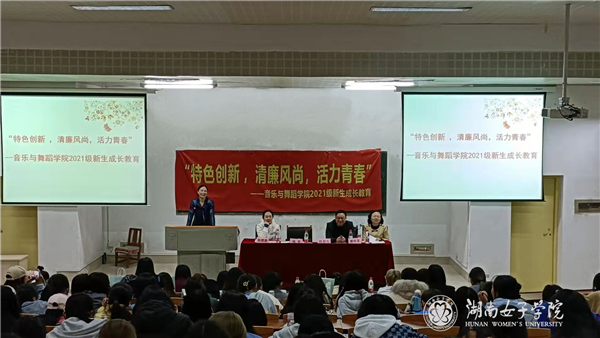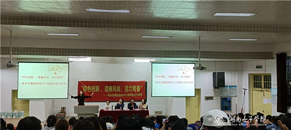 本网讯(音乐与舞蹈学院 刘力恺 艾美馨)2021年10月20日19时在金年会app笃行楼报告厅举行了以“特色创新 ,清廉风尚,活力青春” 为主题的新生成长教育大会。音乐与舞蹈学院党总支书记杨平、院长陈君凡、音乐系主任曹玲玉、专业教师代表张晓娇、肖志丹等老师及2021级全体新生、部分老生代表参加了此次活动。19级音乐学3班曹欣荣同学主持了本次大会。